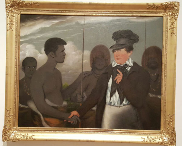 The painting of Sir Stamford Raffles and Queen Elizerberth II are classical representation of a portrait painting done in oil paint. These are the norm we expected for a painting. What is uncommon is the painting below which has a touch of humorous art (like cartooning) but painted in a formal way. There is a story behind the handshake and it reminded me of a editorial cartoon except that it is missing a gag and punchline!