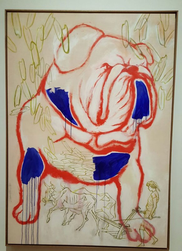The painting of the bulldog below is done by Singaporean artist, Tang Da Wu. Most of us will see a bulldog…a dog of course, but this bulldog is actually a substitution of the British empire and it bleeded its influence on those who are under her…feet! There is an element of satirical cartoon in his artwork.
