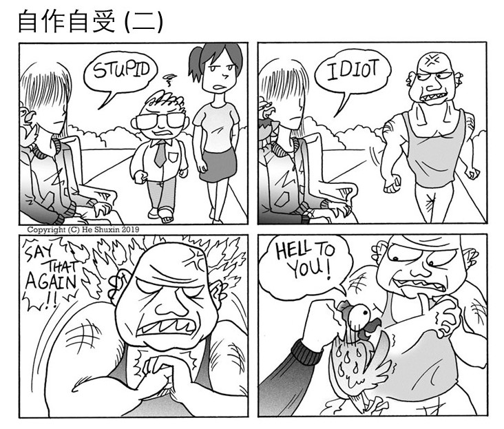 The drawing below serves as an educational material to inform the natives that punishment is equal under the law. This is obviously a comic strip or sequenctial art in my view. The question is, after looking at all the artworks, which one do you think is a serious form of art? Are there equality under the context of ‘serious’? Seriously…it all looked kind of serious to me:P